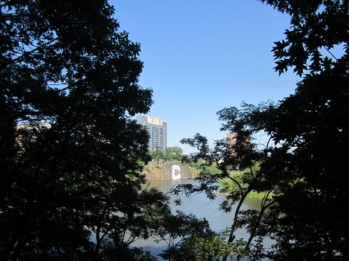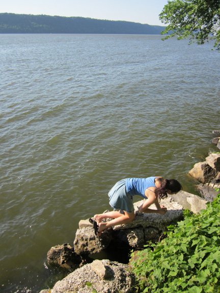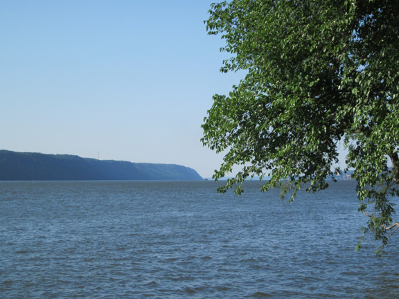 We wandered south and found a very nice spot under a tree by the river with the New Jersey (pride swelling) Palisades as a backdrop.