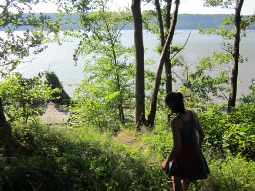 It was a brilliant day and I wrangled my friends Eddie and Allison to make the trek with me. Allison had lived in Inwood years back, so she was an excellent guide. We wound our way through the hills of the park and looked for a suitable launching point. I had wanted to do it around Spuyten Duyvil. I know the currents there are screwy and I was curious as to what the bottle would do. Get caught in a whirlpool or something? We thought about crossing the railroad tracks to a good spot, but then didn’t feel up to scaling the fence. Or getting run over by the train. Probably the only thing Amtrak is able to accomplish with efficiency.