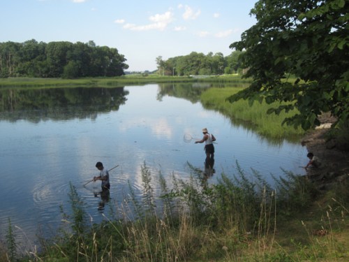 Brandon and I parked the Holy Corolla in the Toys R Us parking lot and proceeded to make our way through some thick growth towards the water, a slender hooked finger of high tide that would just start to be flowing out towards Mill Basin at that hour. It was amazing to see how much growth and transformation had taken place in the last 8 years or so. There were new trees, plants spazzily going to seed everywhere, and a homeless guy’s encampment.