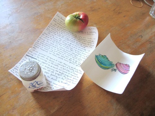 Surprised a couple cormorants. Because it’s hard to get to, I wanted to make sure to toss the bottle after high tide, but while the water was still high enough to float the bottle out. It seemed to be flowing well, so I waded out a bit and plopped it in.
