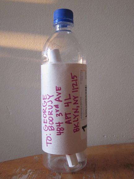 Ever since my quick swing into Four Sparrow where I saw the fox, I’ve been wanting to go back. The perfect opportunity arrived upon meeting writer Brandon Keim. He had written about a show that I was in this summer and had been curious as to what I was up to with this bottle project. So we decided to go out and spread my art garbage together.