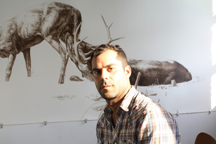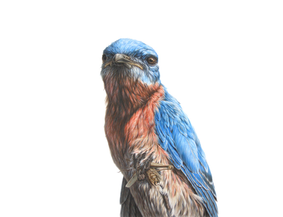 In my work, I explore our relationship to Nature and our perception of that relationship. I’m interested in how we see animals, and see ourselves as animals. What does a bluebird really look like? How do we manage and attempt to control wildlife? By representing familiar animals in unfamiliar contexts I want the viewer to see them in a new way, and to confront both the animal and their preconceived notions about it.